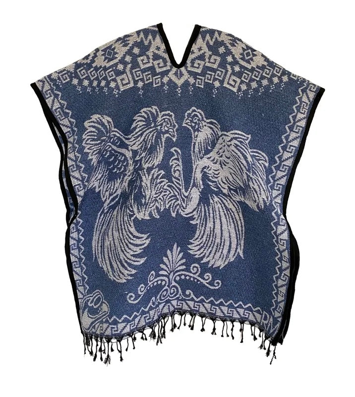 El diseño de este poncho está inspirado en elementos icónicos de la cultura mexicana, estos detalles le dan un toque auténtico y folclórico que lo hace destacar entre las demás prendas. Perfecto para quienes buscan expresar su amor por la cultura mexicana a través de su vestimenta.